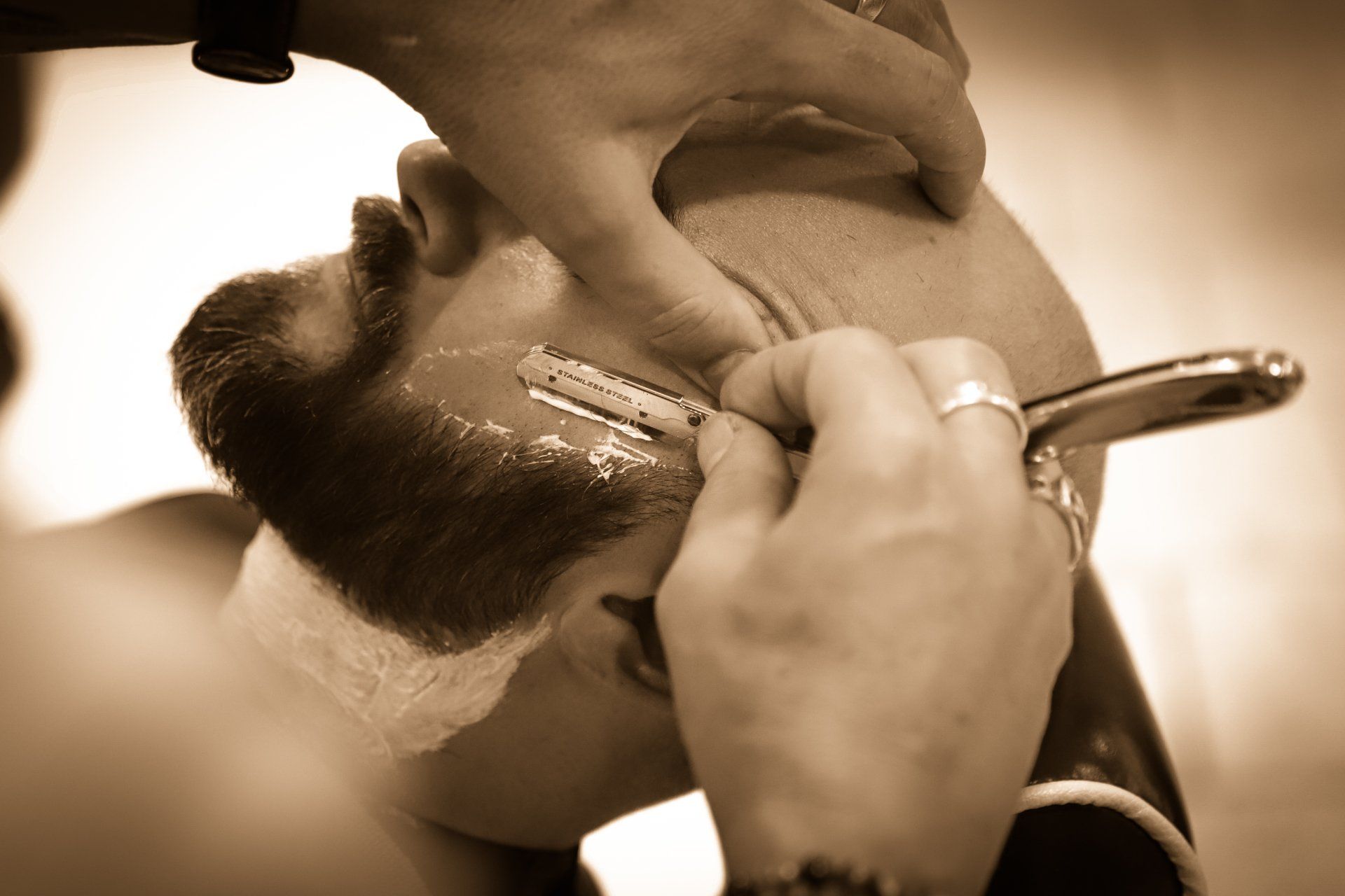 Savonnage au blaireau, massage, serviette chaude et soins, pour un moment de détente et d'entretien de votre barbe, de votre moustache ou de votre bouc.